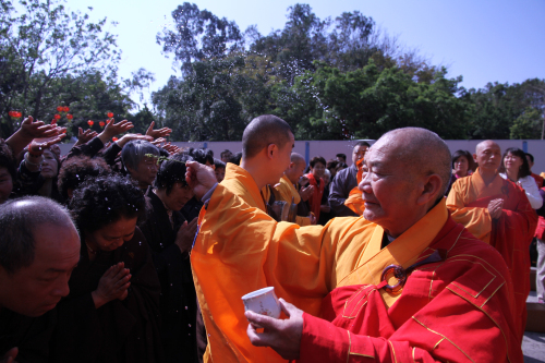 深圳万佛禅寺隆重举行了祈福洒净仪式。仪式由中国佛教协会副会长、弘法寺方丈印顺大和尚主法,一如长老、印钦法师及万佛禅寺法师们共同护持,十方善信随喜参加了这一殊胜仪式,法喜充满