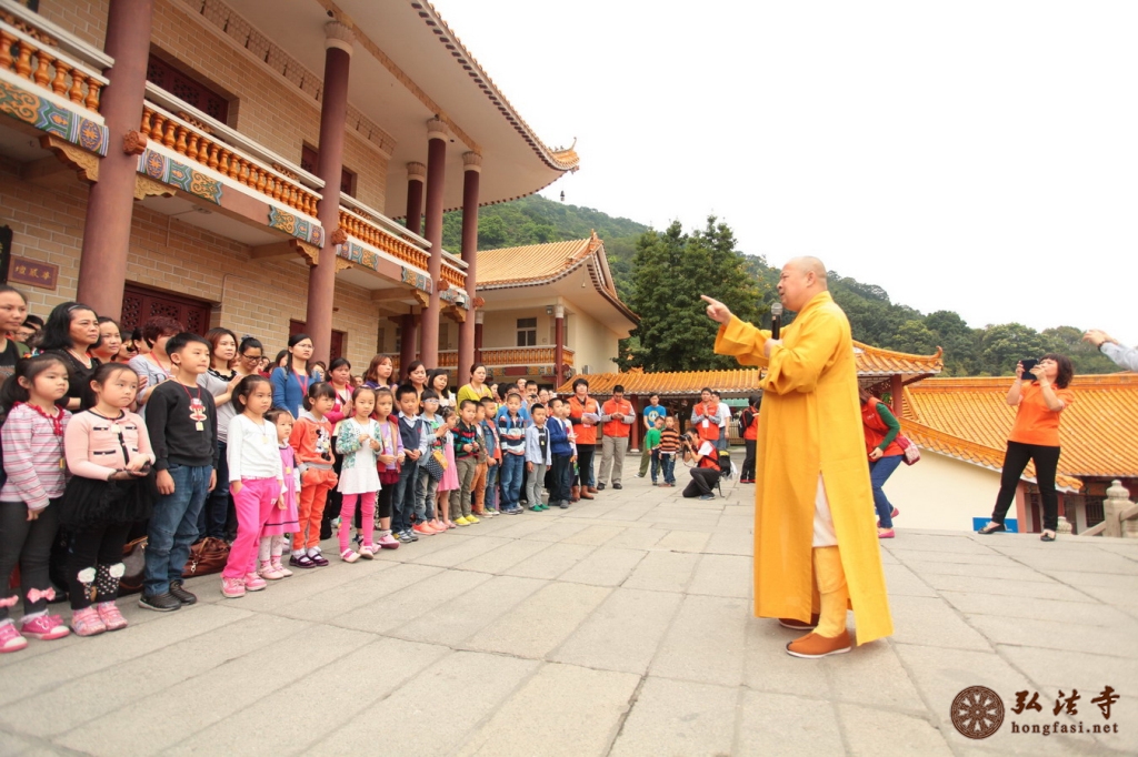 2014年3月29日,第三期弘法寺义工培训班的学员和国学班的小朋友们,在弘法寺举行了缅怀上本下焕老和尚圆寂两年的寺院巡礼活动。这次活动,也是大家将开办以来所学的佛门知识和仪轨用于实践的体验之旅。 中国佛教协会副会长、海南省佛教协会会长、弘法寺方丈印顺大和尚特意来给大家讲法开示,希望大家在接受培训后,去回馈社会,服务社会,服务众生!