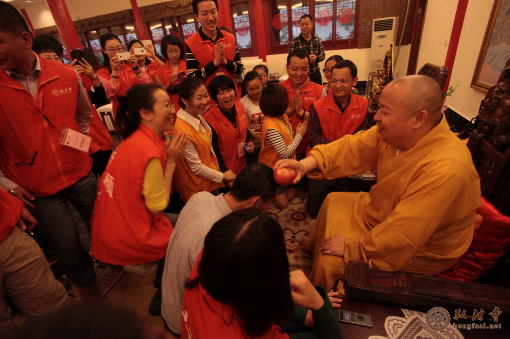开示结束,大和尚在接待大厅亲切的倾听了班委成员的工作汇报、各人的自我介绍和任务担当,大和尚对义工组织的成长表示出十分关心,对大家逐一做了加持,并殷切的期望大家常回弘法寺看看。同时提到弘法寺的一砖一瓦,都是来自社会的供养,希望大家在接受培训后,去回馈社会,服务社会,服务众生!(文:南海佛教 图:顿康)