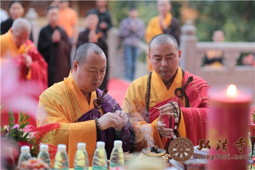 5日早上6:00,深圳弘法寺在法堂隆重举行了护送本焕长老舍利赴湖北新洲报祖寺供奉仪式。仪式由中国佛教协会副会长,湖北省佛教协会名誉会长,海南省佛教协会会长,深圳弘法寺方丈印顺大和尚亲自主持法会,报祖寺住持、本焕长老的师弟本乐长老代表报祖寺亲自到弘法寺恭请长老舍利。仪式圆满结束后,本焕长老舍利由法师护送团护送至湖北新洲仓埠报祖寺永久供奉。