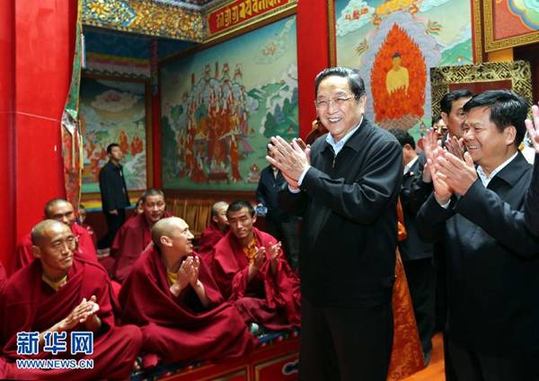 16日至17日,俞正声来到迪庆藏族自治州,深入乡镇社区、藏传佛教寺庙和藏文中学,与基层干部群众共商发展稳定大计。调研期间,俞正声还专门听取了云南省藏区工作情况
