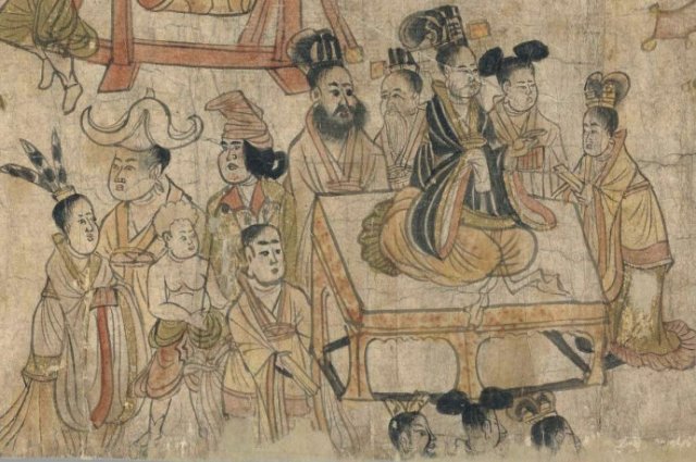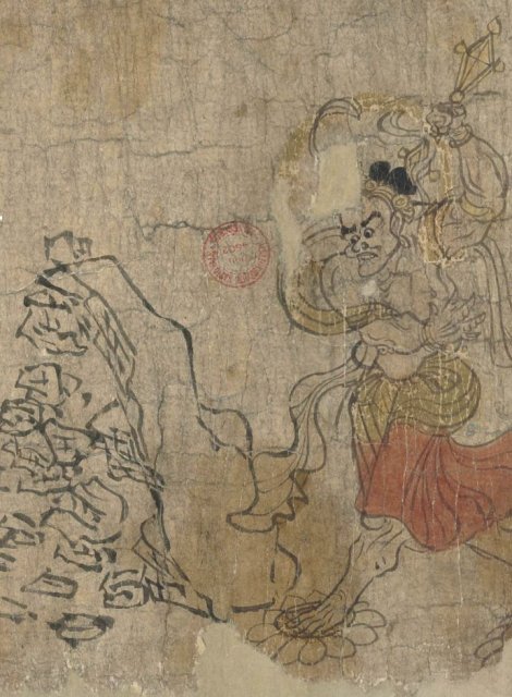 祗树给孤独园,又称祗园精舍,是佛教史上第二所佛寺,许多佛经都是在祗园所讲。但在建造精舍之前,遭遇到以劳度叉为首的当地外道的百般阻挠,他们向国王建议在造精舍前与佛徒斗法,佛徒如胜,才能建,败则不能建精舍。《降魔变图卷》正是详细描绘了佛弟子舍利弗与外道六师斗法的惊心动魄场景。舍利弗六斗外道劳度叉大获全胜,从而赢得了建造祗园精舍的机会。