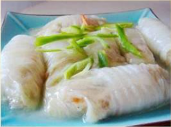 4、将做好的白菜卷连盘子一起放入蒸锅里蒸约30分钟取出,把盘中的汤汁倒出,用少许粉芡勾芡后淋在菜卷上即可。