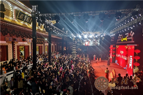 23时30分,大雄宝殿广场前,2020年“盛世钟鸣·祈福五洲”祈福活动正式开始。