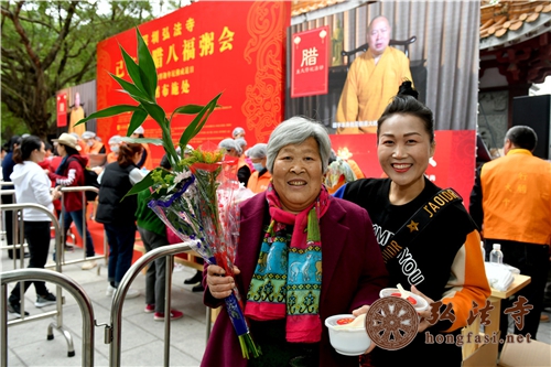 在这个喜庆的日子里,印顺大和尚也亲临施粥现场,向大家致以节日的问候。印顺大和尚表示,过了腊八就是年,腊八是把我们每一年对春节的期待、春天的期望与来年的祝福都慢慢的凝聚在一起,让我们每个人细品这碗腊八佛粥,回味过去一年,祝福未来一年。腊八粥寄托着大家对一切美好的祝福,对大家一切美好的祝愿,我希望大家喝了今天的腊八粥以后,都可以身心如意,开心自在,欢欢喜喜,开开心心的迎接新的一年,也让腊八粥温暖自己的身心,温暖自己的未来,使身心在腊八粥的祝福下都能自在欢喜、无忧无虑的每一天。